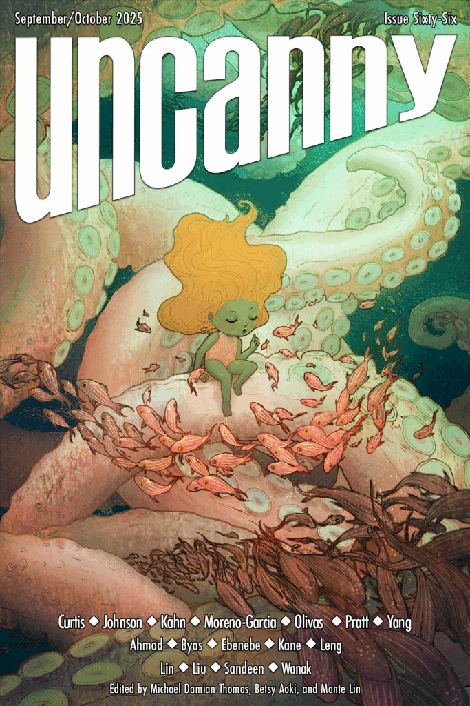 Céu, a widowed captain of a research starship, finds her ship and crew stranded in the gravity of a dying space whale. As days rack up into weeks, and the crew’s desire to kill the creature only grows, Céu attempts to communicate with it.